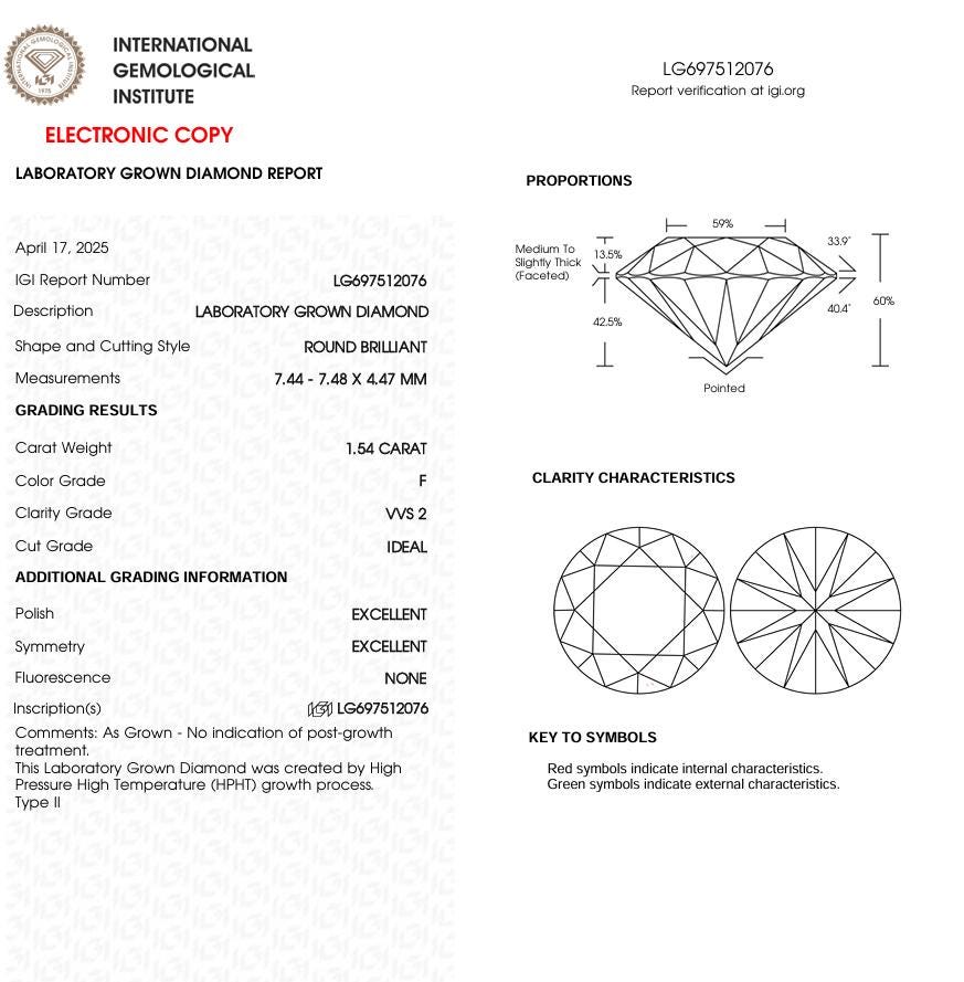 1.54 CT Round Cut Lab Grown Diamond for Anniversary Gift | IGI Certified | Diamond for Jewelry or Engagement Ring