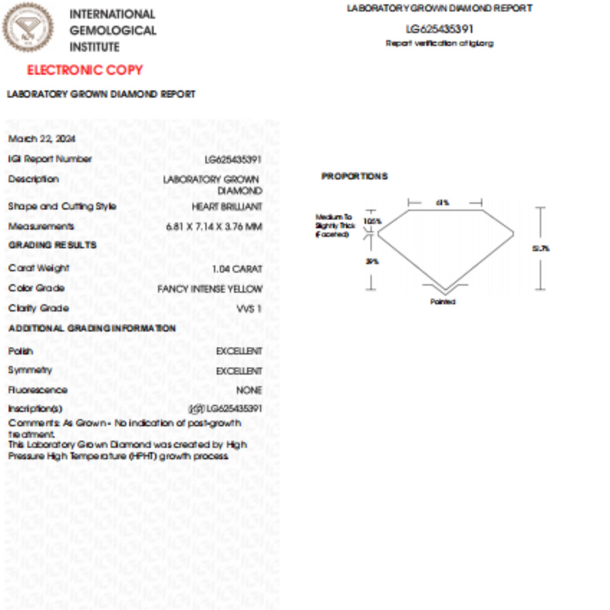 1 CT-VVS1 Heart Shape Yellow Lab Grown Diamond For Engagement Ring | fine jewelry