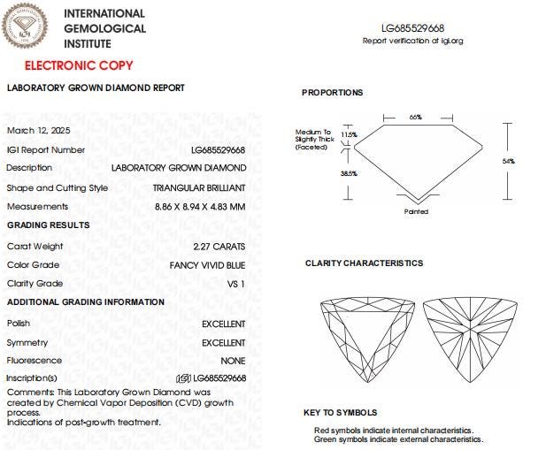 2.27 CT Vivid Blue Triangle Cut Lab Grown Diamond for Engagement Ring