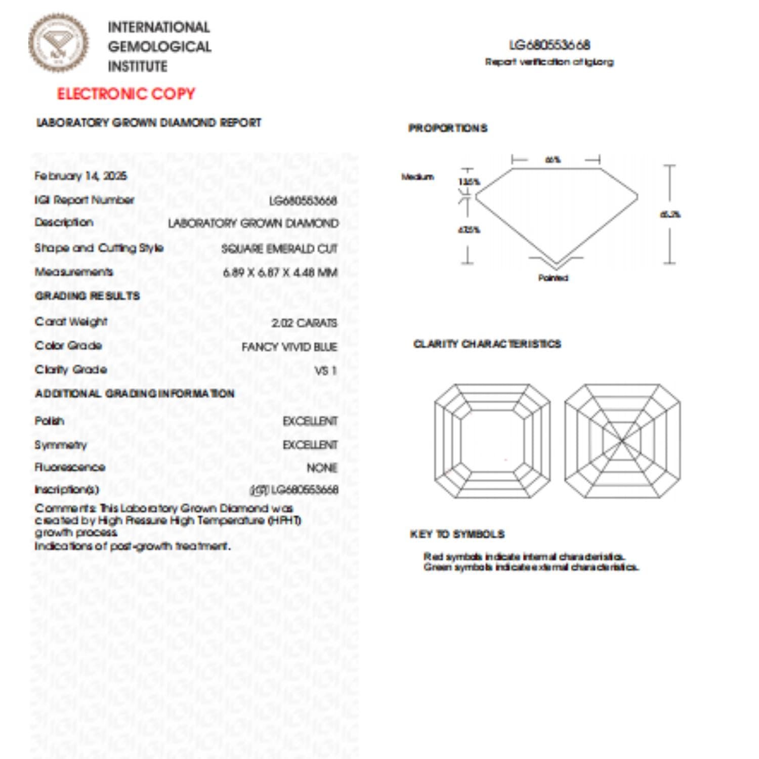 2 CT Asscher Cut Vivid Blue Lab Grown Diamond For Engagement Ring | wedding Ring