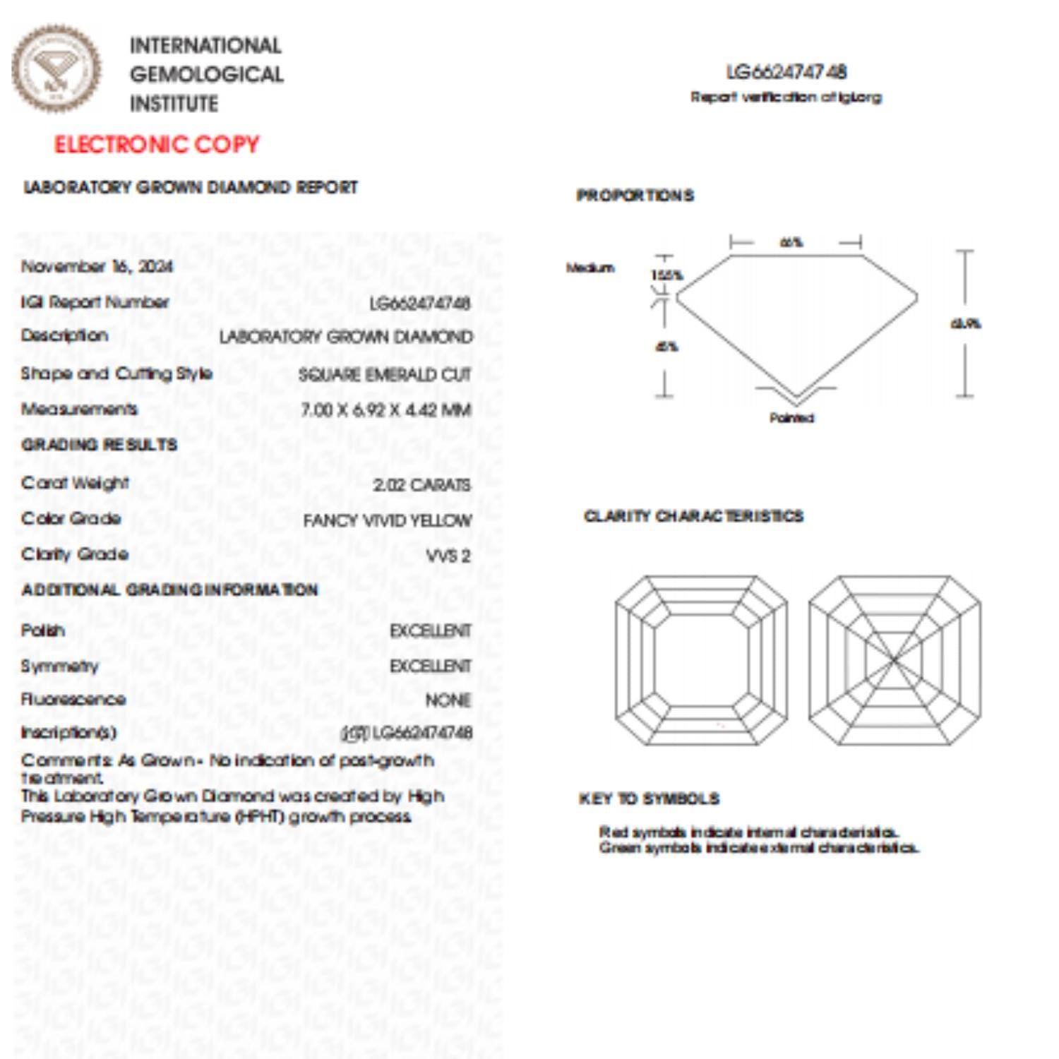 2 CT Asscher Cut Vivid Yellow Lab Grown Diamond For Engagement Ring