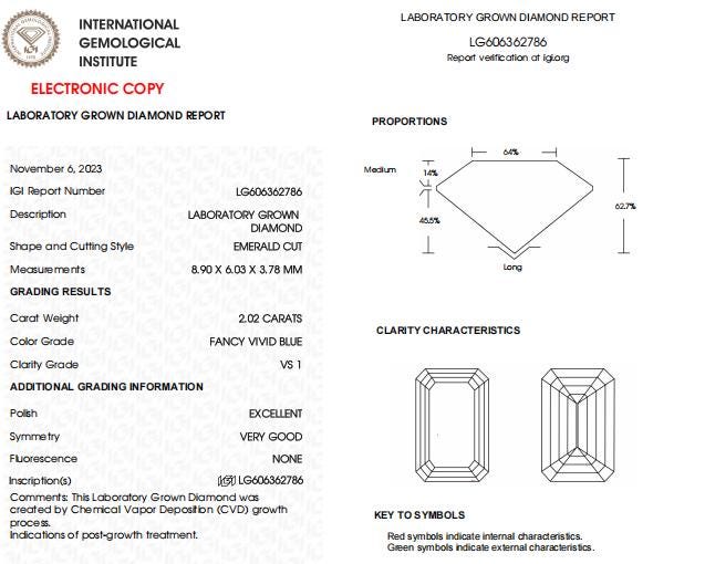 2 CT Emerald Cut Vivid Blue IGI Certified Lab Grown Diamond For Engagement Ring