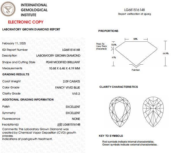 2 CT-VVS2 Clarity Pear Vivid Blue Lab Grown Diamond For Engagement Ring | Best Diamond Gift