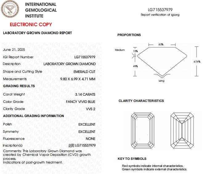 3.14 CT-VVS2 Clarity Emerald Cut Vivid Blue Lab Grown Diamond For Engagement Ring