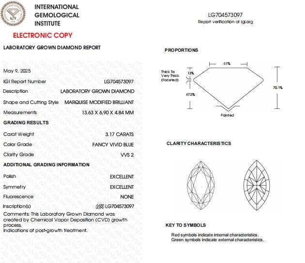 3.17 CT-VVS2 Vivid Blue Marquise Lab Created Diamond For Engagement Ring