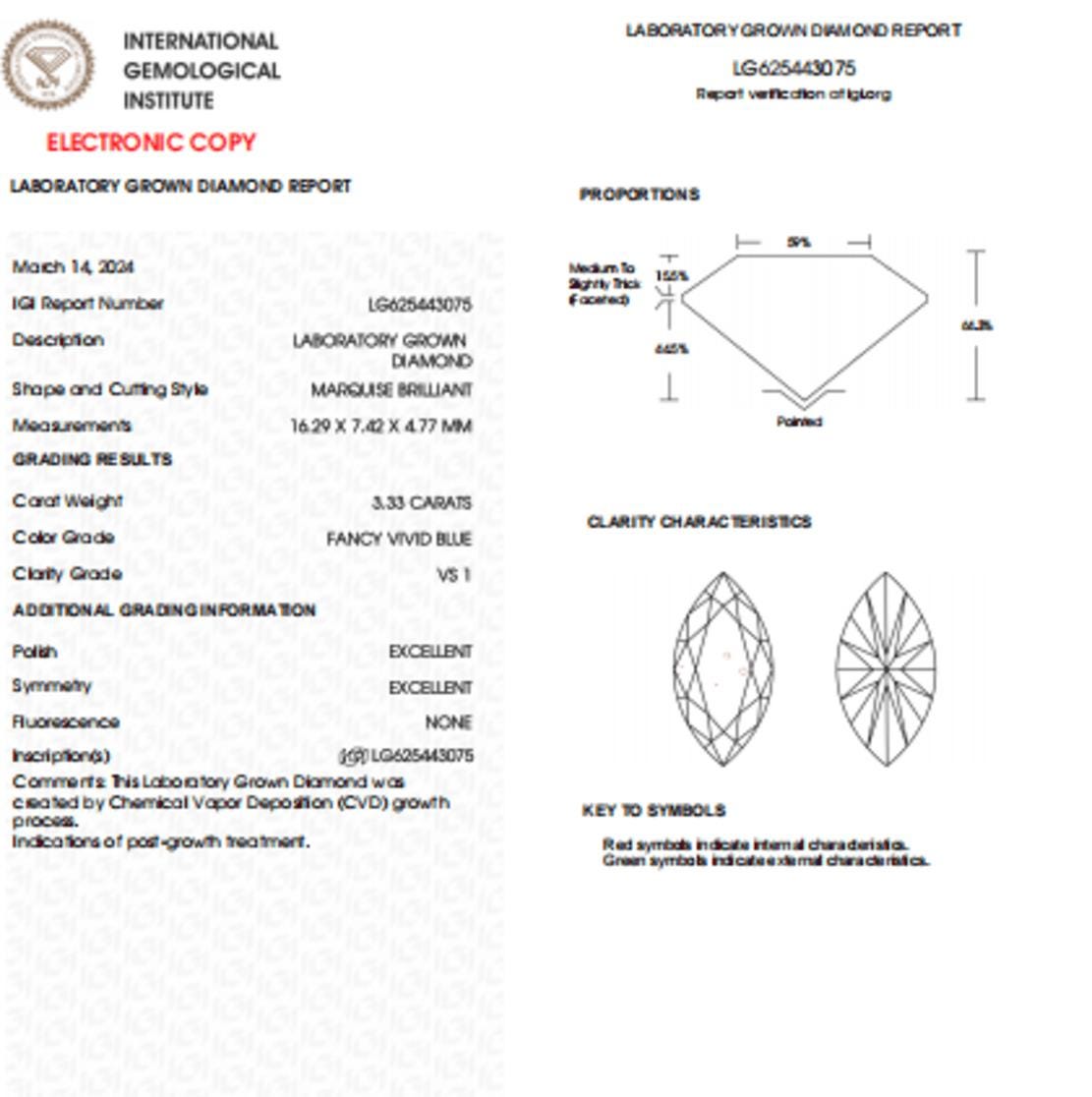 3.33 CT Marquise Vivid Blue Lab Grown Diamond For Engagement Ring