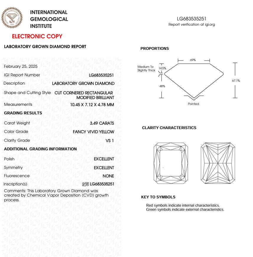 3.49 CT Yellow Radiant Cut Lab Grown Diamond for Engagement Ring