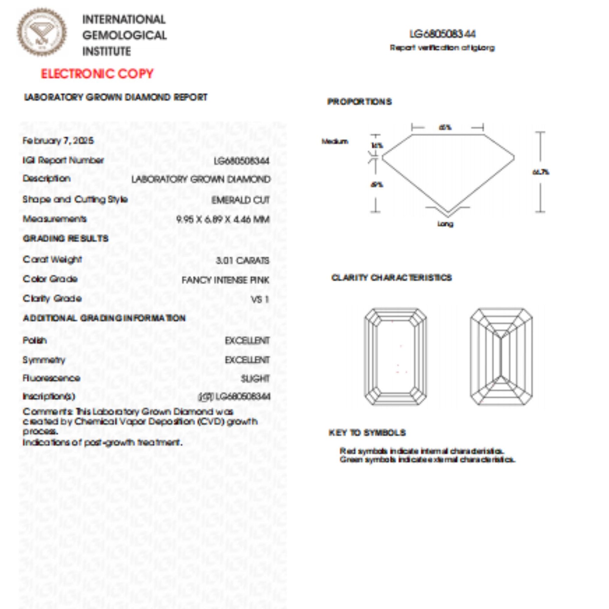 3 CT Emerald Cut Intense Pink Lab Grown Diamond For Engagement Ring