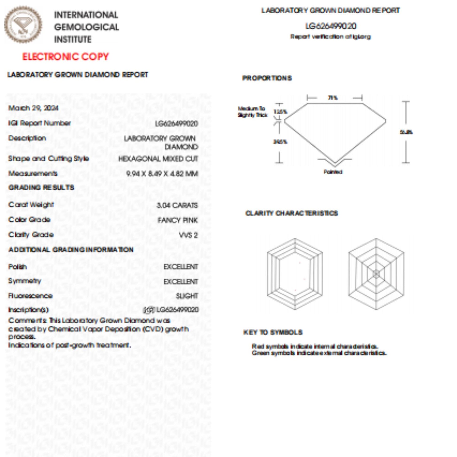 3 CT Fancy Pink Hexagonal Cut Lab Grown Diamond For Engagement Ring