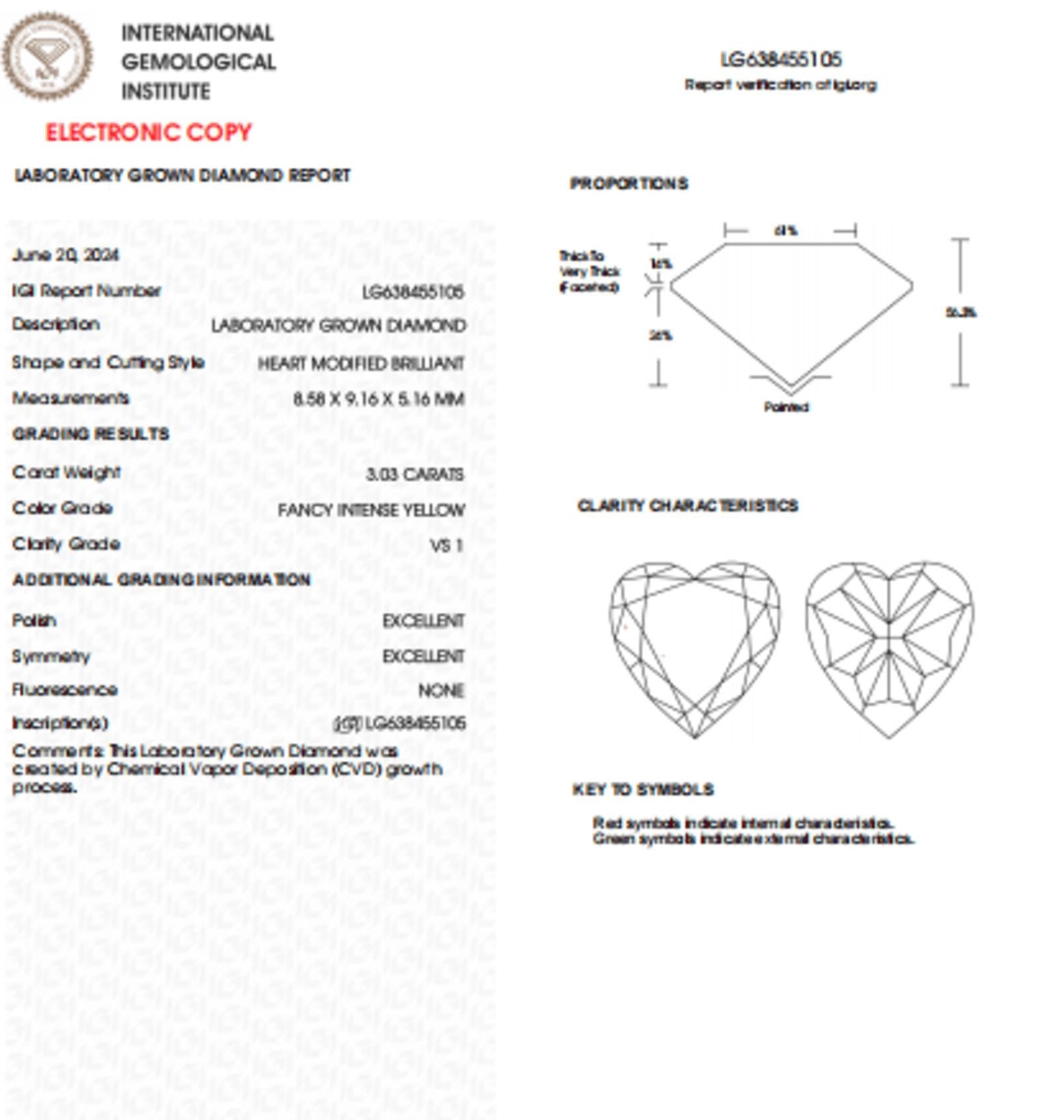 3 CT Heart Shape Intense Yellow Lab Grown Diamond For Engagement Ring