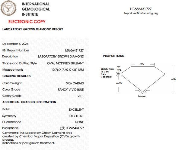 3 CT Oval Vivid Blue Lab Grown Diamond For Engagement Ring | Custom Ring