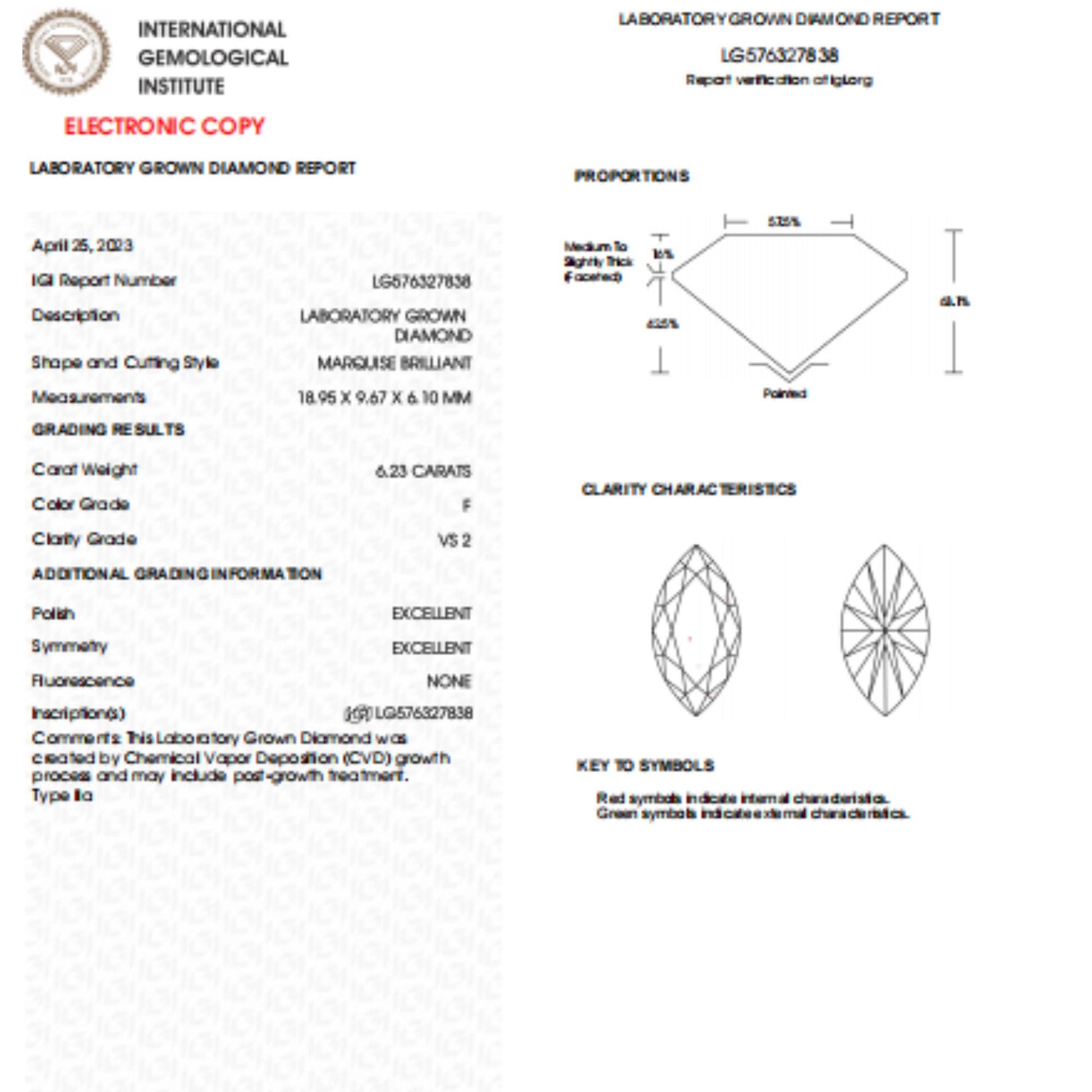 6.23 CT Marquise Lab grown Diamond For Engagement Ring