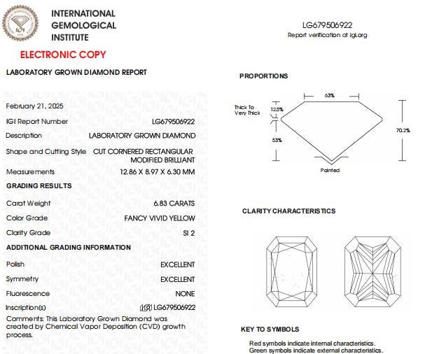 6.83 CT Radiant Vivid Yellow Lab Created Diamond For Engagement Ring
