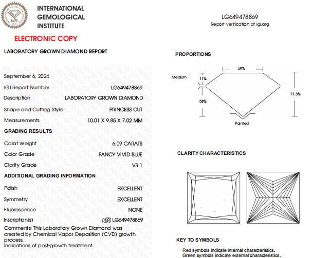 6 CT Princess Cut Vivid Blue Lab Grown Diamond For Engagement Ring | Fine Jewelry