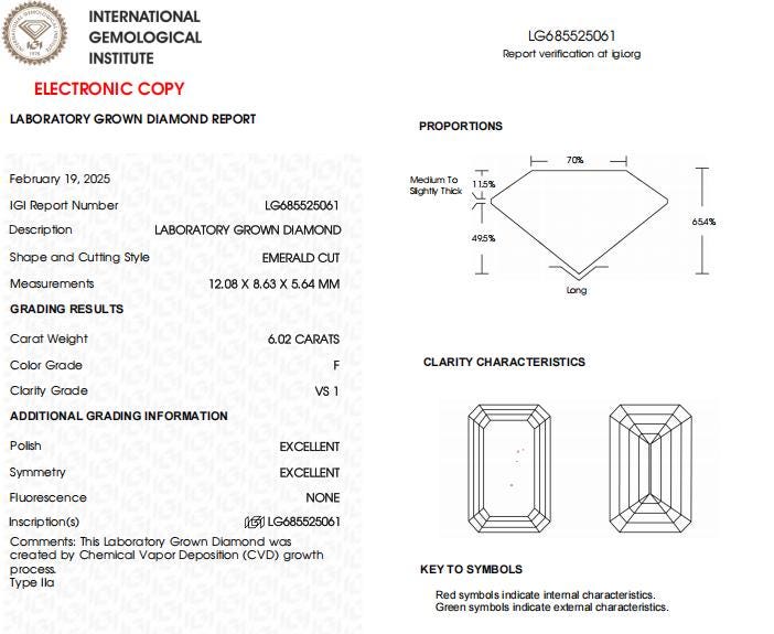 6 CT-VS1 Clarity F Color Emerald Cut Lab Grown Diamond For Engagement Ring