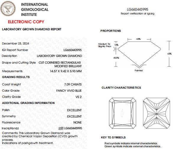 7 CT Radiant Cut Vivid Blue Lab Grown Diamond For Engagement Ring