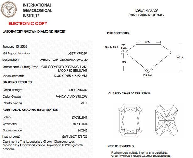 7 CT Radiant Cut Vivid Yellow Lab Grown Diamond For Engagement Ring